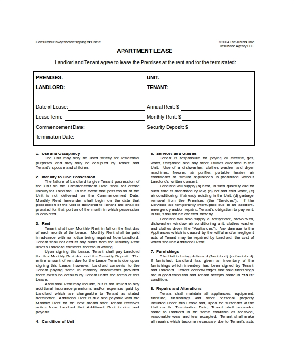 Apartment Lease Agreement Free Printable