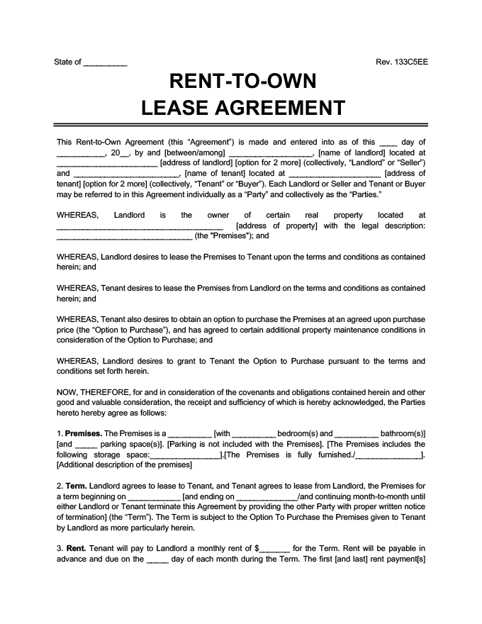 Rent To Own Agreement Create A Free Lease To Own Lease Agreement