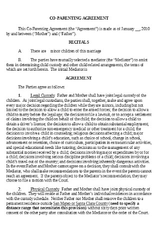 Printable Co Parenting Agreement Template Free Word Excel Templates