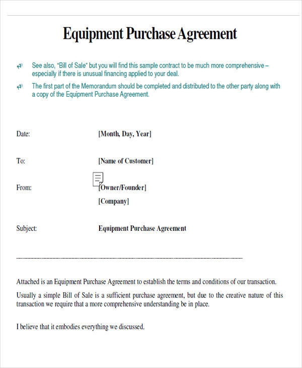 FREE 7 Sample Equipment Purchase Agreement Templates In PDF MS Word