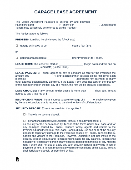 Free Garage Parking Rental Lease Agreement Template PDF Word EForms