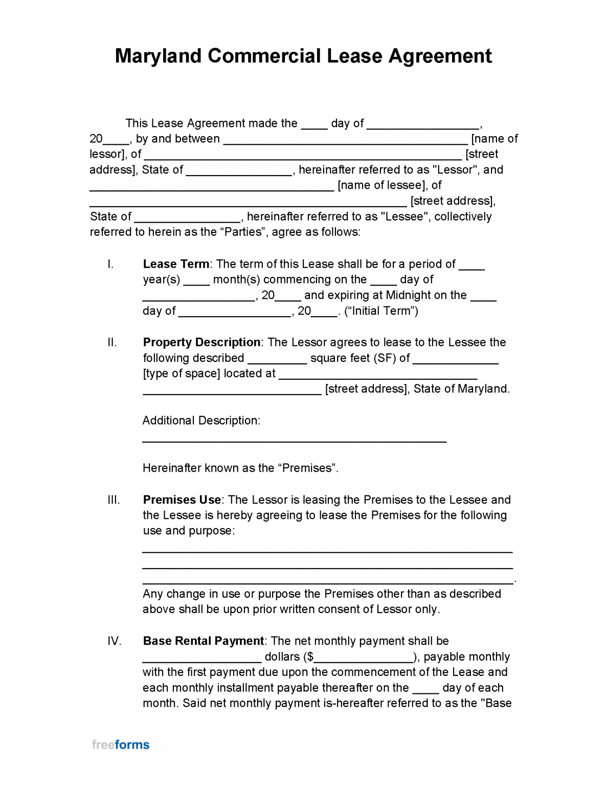 Printable Lease Agreement Maryland Download An Official Maryland