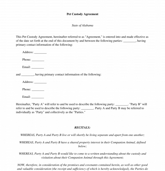 Pet Custody Agreement WORD PDF Template LegalScrolls